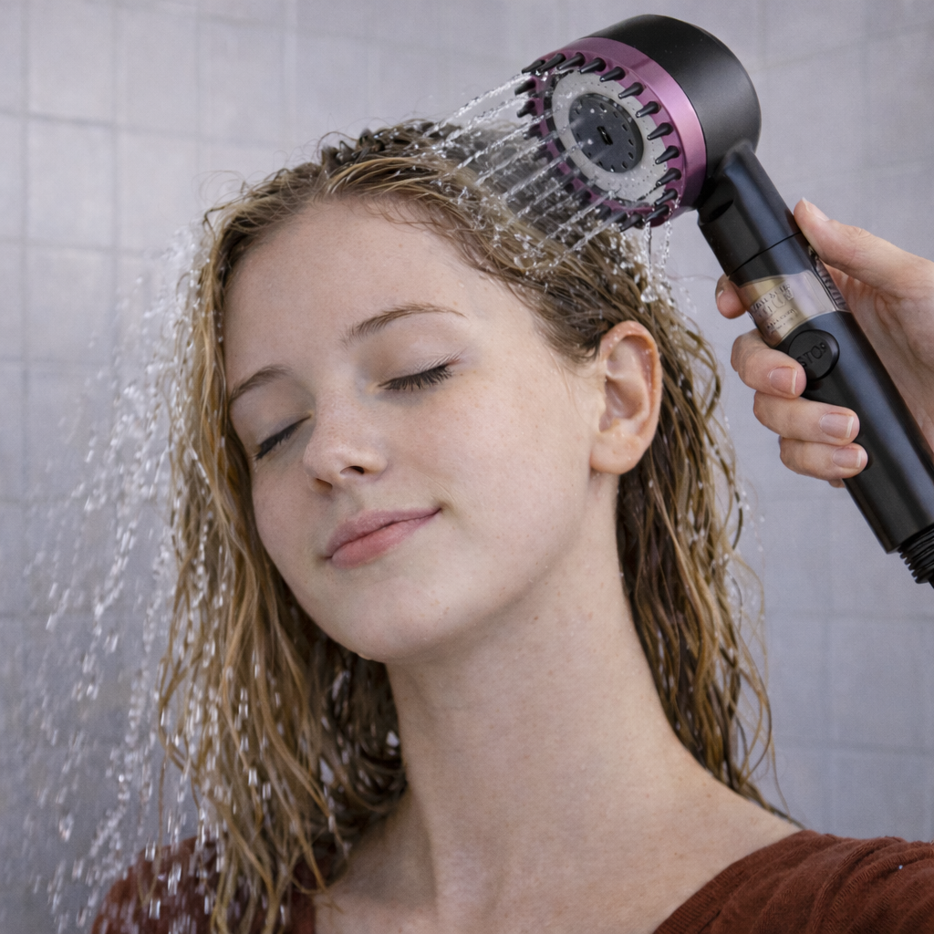 Gently rinse your hair and scalp using the integrated massage head. The combination of purified water and soft pressure helps cleanse, relax, and refresh while you shower ✨